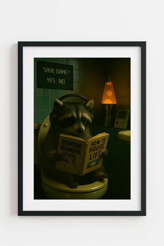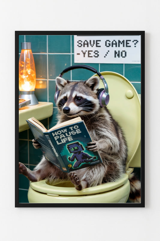 Toilettenposter Waschbär Gamer | Pause-Modus fürs WC – Level up!