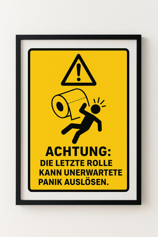 Warnschild Toilettenposter | Lustiges WC Bild mit Spruch | Gäste-WC Deko mit Klopapier-Alarm