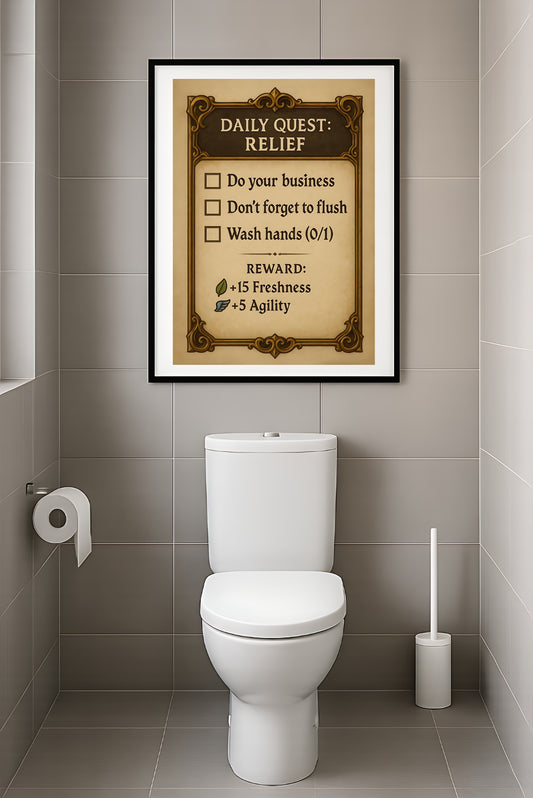 Daily Quest Klo-Poster | Lustiges WG-Bild fürs Bad | Gaming Meme Toilettenposter