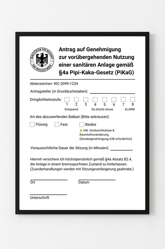 Lustiges Klo-Poster: Antrag nach §4a PiKaG | Perfekt für Gäste-WC & WG