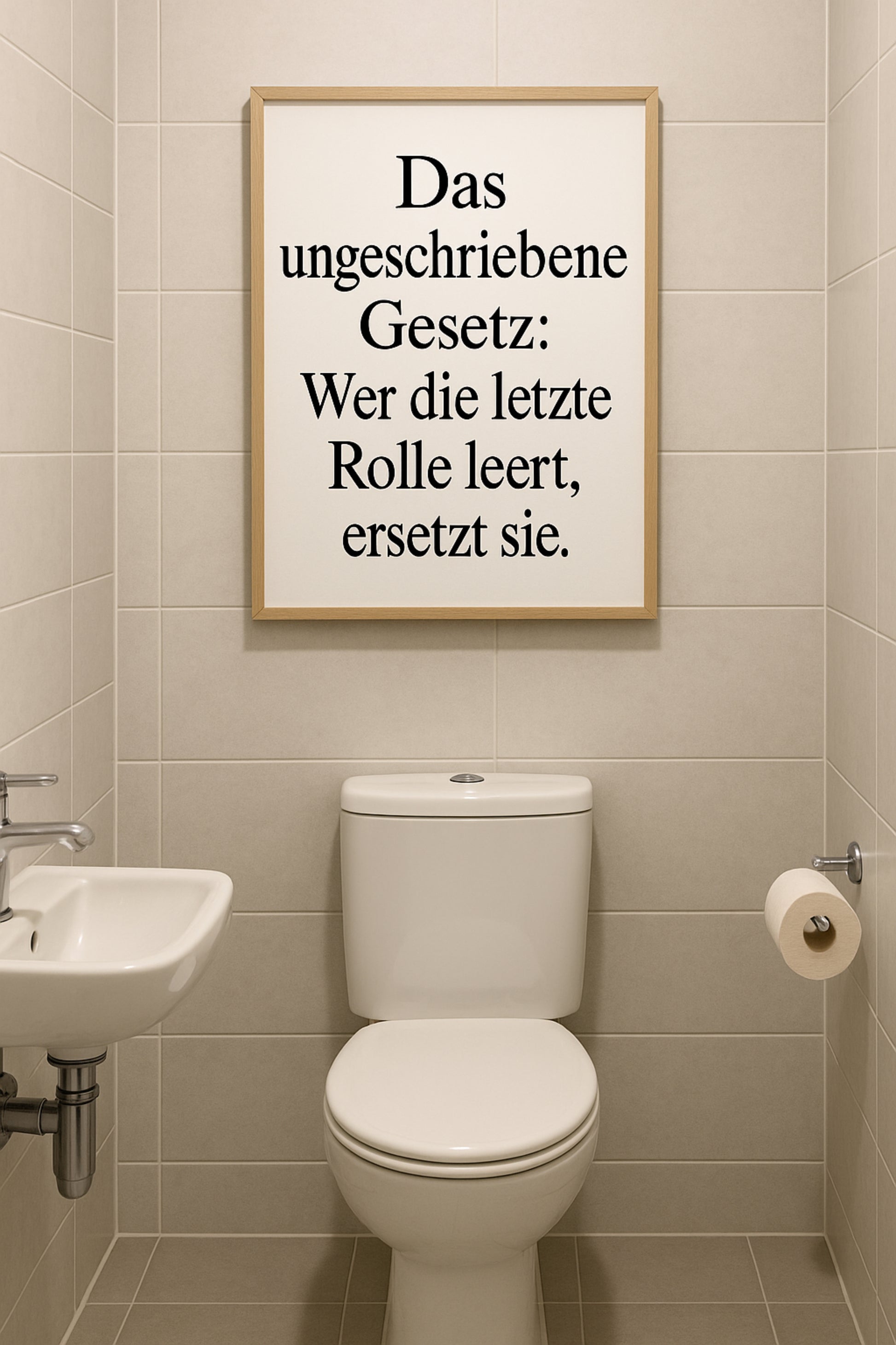 Das ungeschriebene Gesetz im Familienbad – endlich mal schriftlich festgehalten! Dieses lustige Poster für die Toilette bringt klare Regeln mit Humor an die Wand. Perfekt für Familien, WGs oder das Gäste-WC. Die hochwertige Druckqualität trifft auf einen charmanten Alltagsappell. Ideal als Gäste-WC Deko und witziges Statement für ordentliche Badezimmer!
