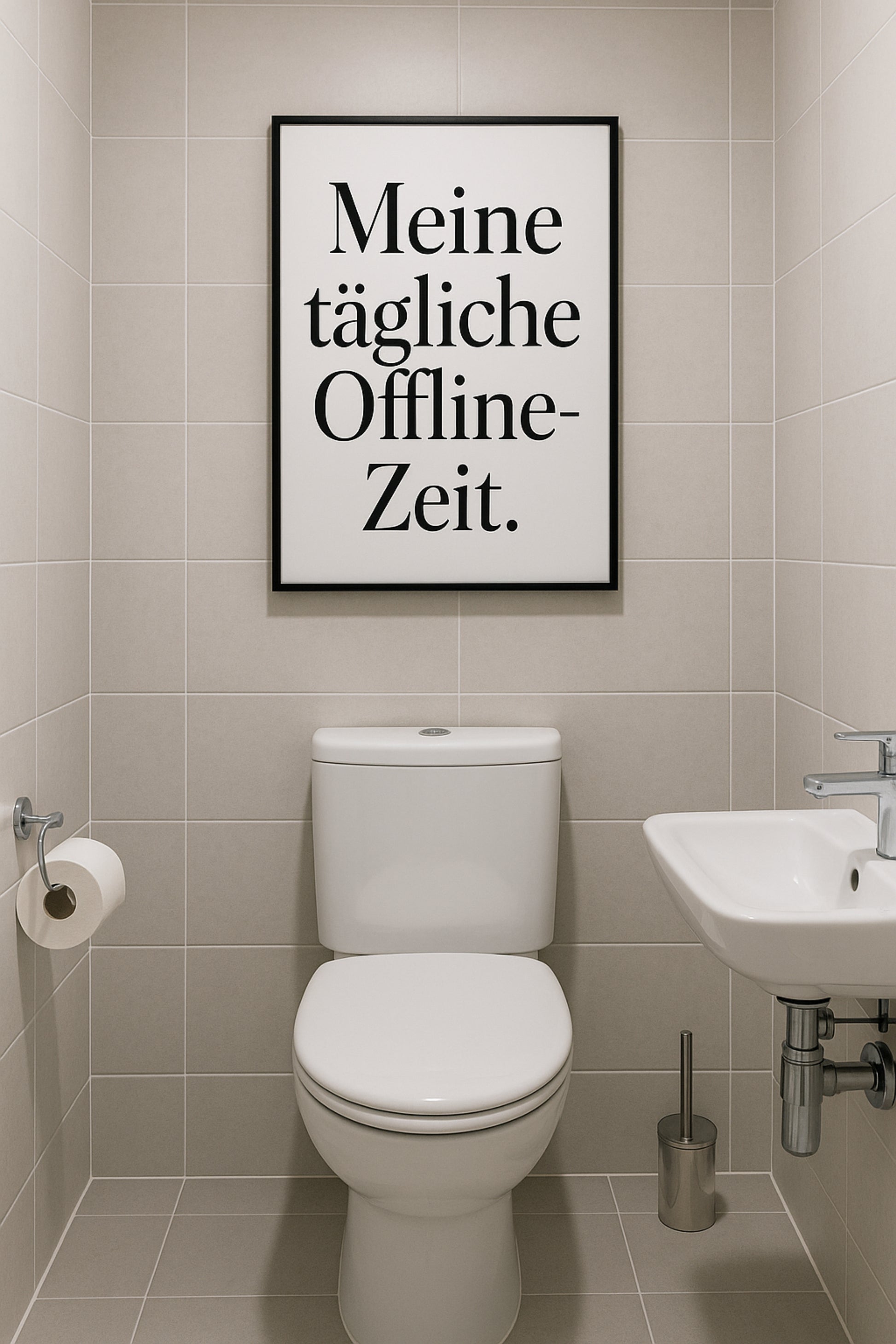 Digital Detox auf dem stillen Örtchen? Dieses stilvolle Toilettenposter bringt Humor und eine Prise Wahrheit ins Badezimmer. Perfekt für alle, die im Bad ihre tägliche Offline-Zeit genießen und gleichzeitig ein smartes Interior-Statement setzen wollen. Ideal als Gäste-WC Deko oder Geschenk für Technikmüde.